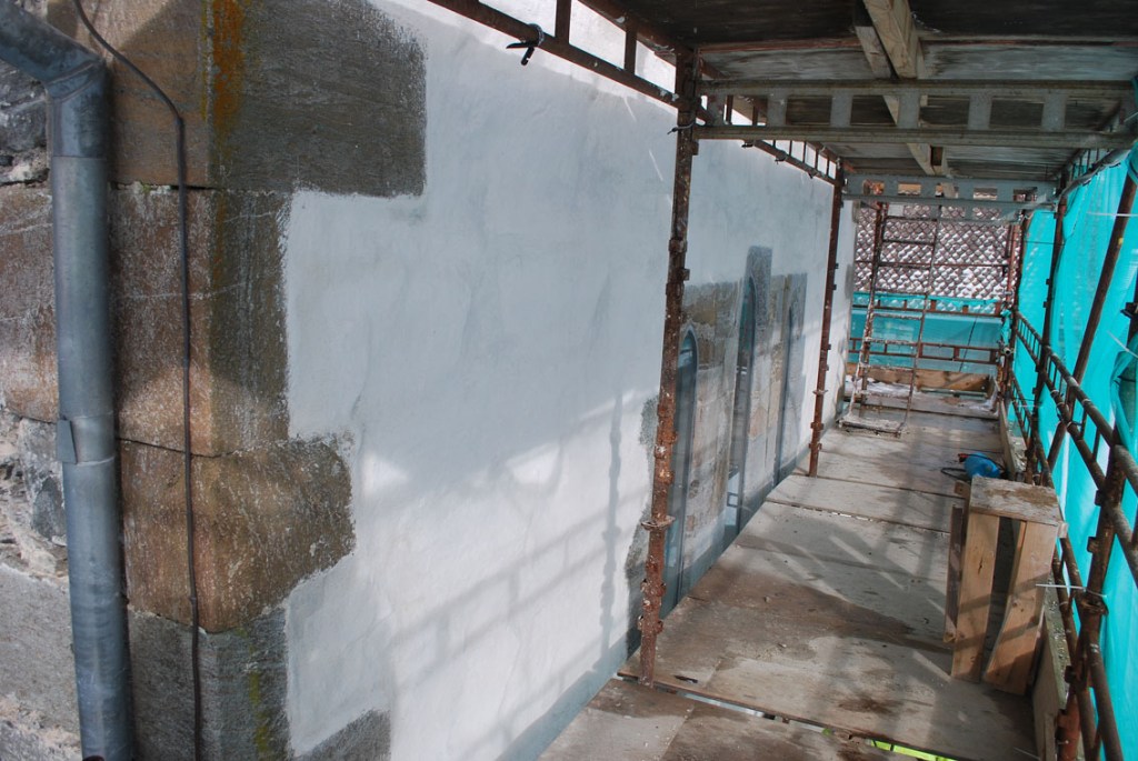 Et av resultatene fra kursene i Stavanger: Restaurering av østfasaden på Hesby kirke.